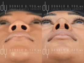 Alar base modification, also known as nostril reduction surgery, is used to address excess nostril flare and/or width. When nostril flare is prominent, a Weir excision is performed to remove a wedge of tissue at the base of the nostril. For wide nostrils, a sill incision is used to reduce horizontal width and improve overall nasal balance. This case highlights advanced Asian rhinoplasty techniques tailored to enhance definition, proportion, and harmony while respecting ethnic features. -