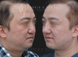 Rhinoplasty and Chin AugmentationBefore and After surgical rhinoplasty and septoplasty. Chin Augmentation was also performed to achieve a more balanced chin.