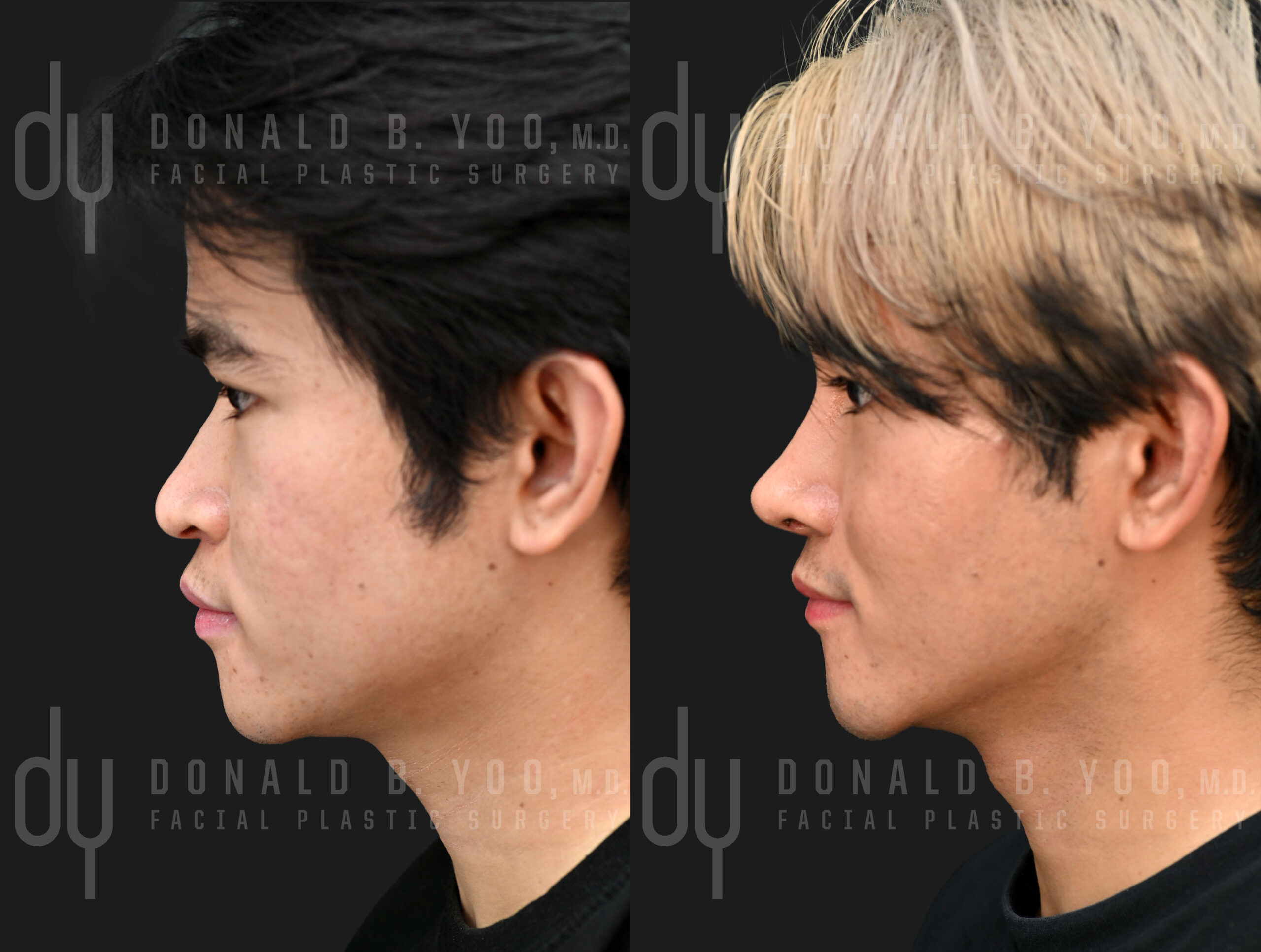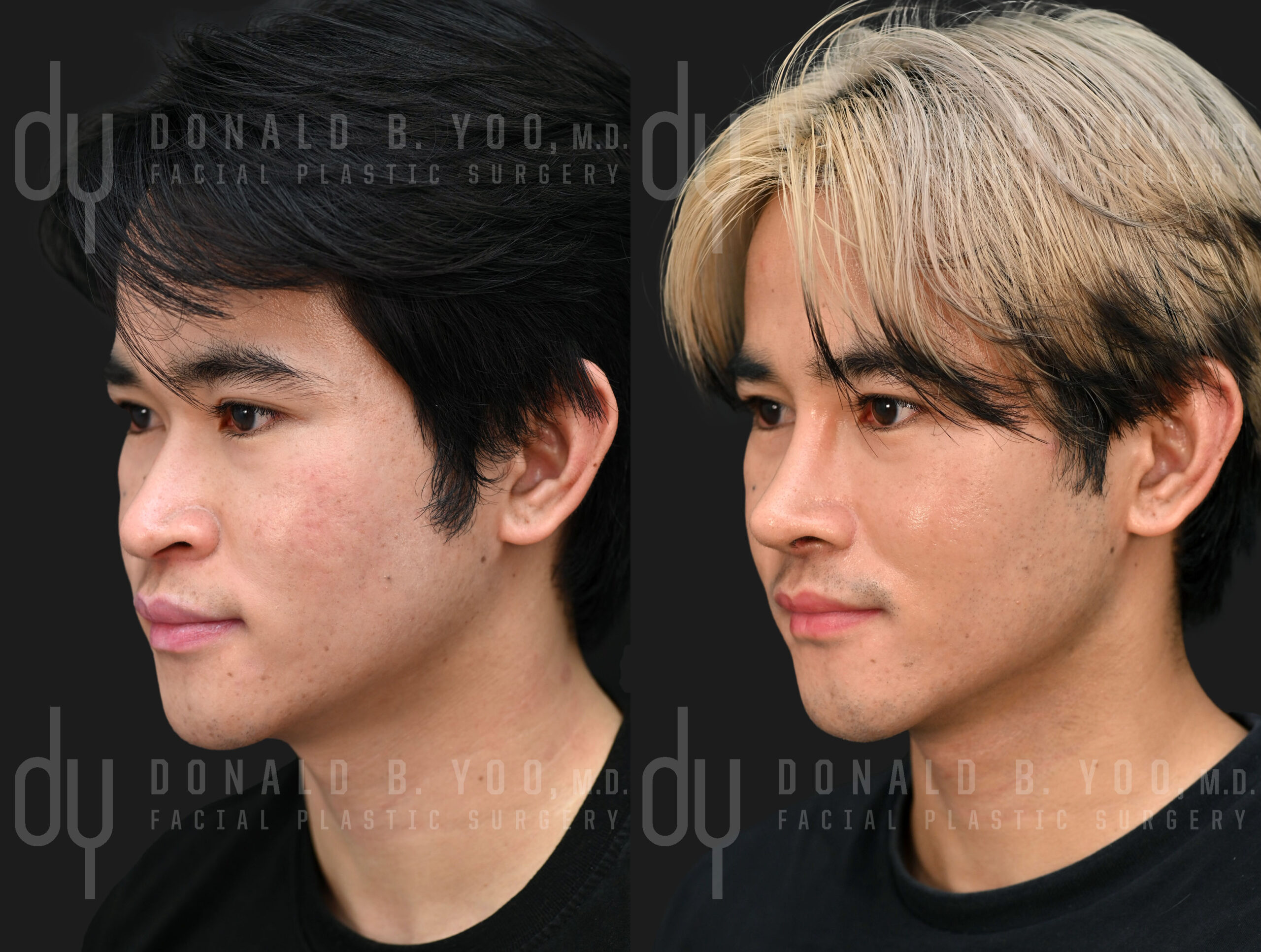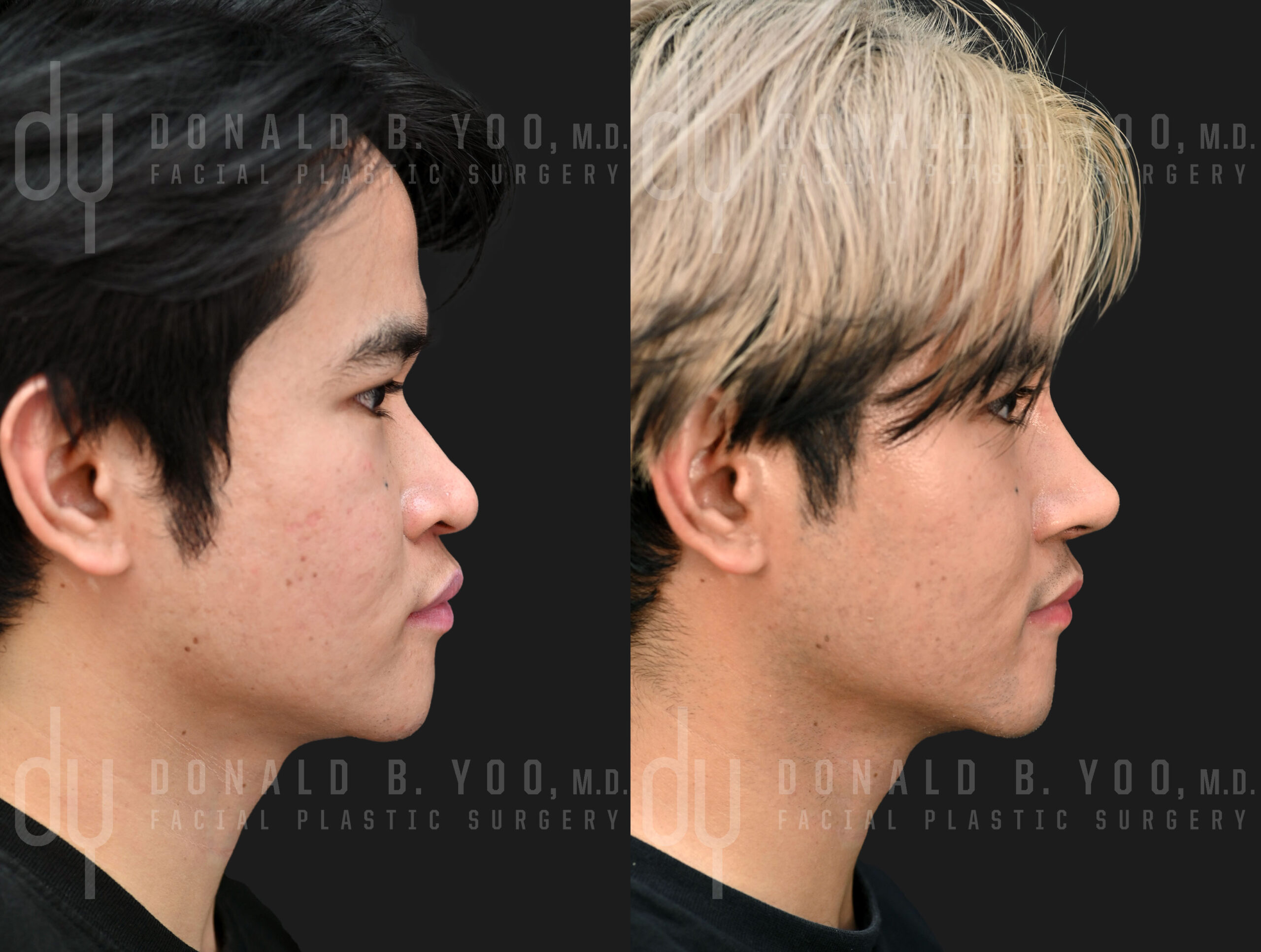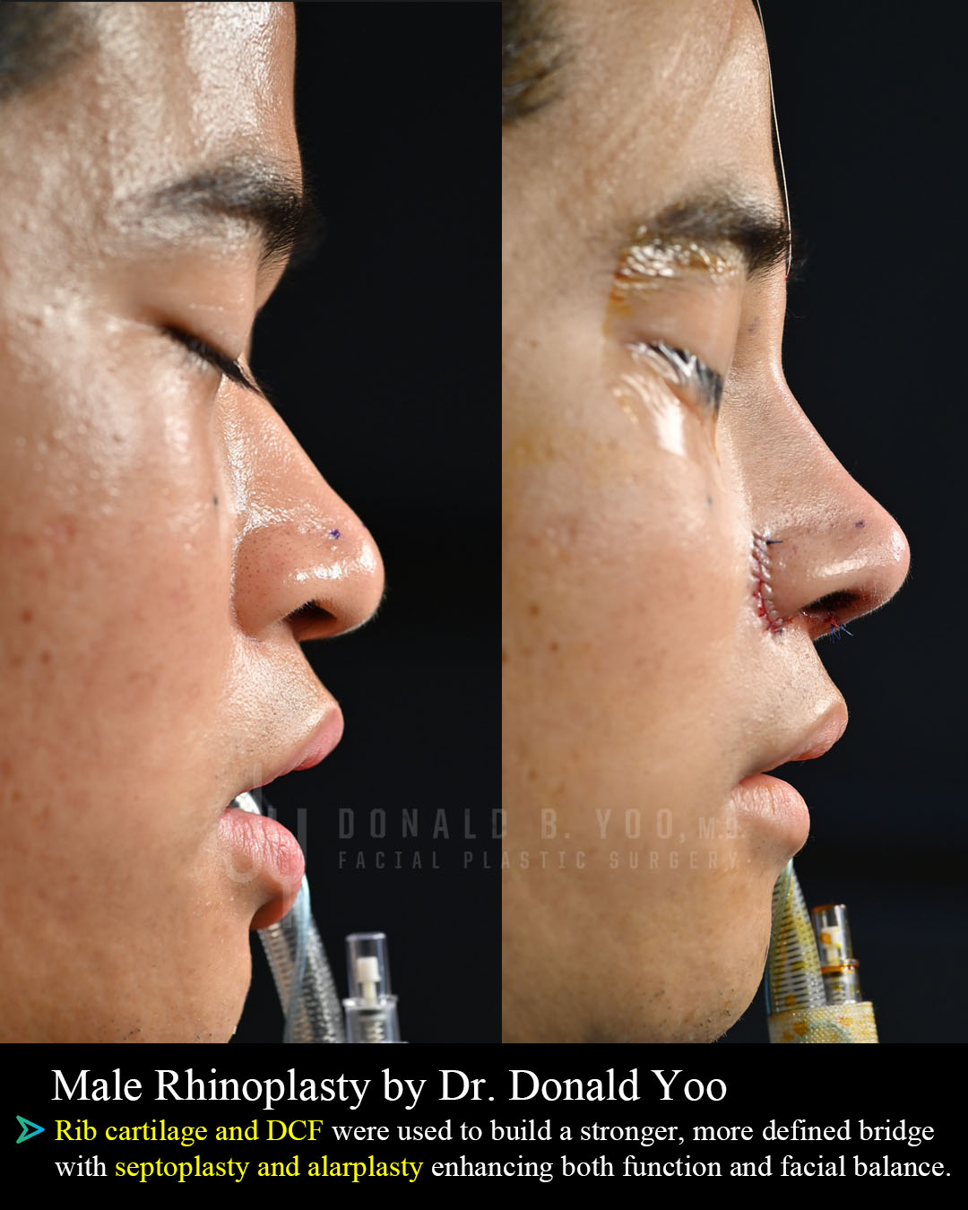 Asian RhinoplastyBefore and After surgical #YOOnose Asian rhinoplasty with rib cartilage and diced cartilage fascia (DCF) to lengthen and refine the nose. Extended spreader grafts, a septal extension graft, and tip refining grafts were used to project and reshape the patient\'s tip. A diced cartilage fascia (DCF) graft was used to augment the dorsum.